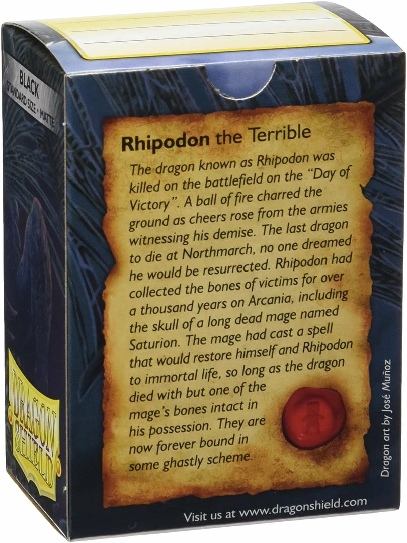Matte textured Dragon Shield sleeves for superior handling. A perfect mix of durability and shuffle-ability. 100 sleeves per box. Sturdy cardboard box fits 75+ cards including sleeves. Every box has a label at the top of the box for your personal use.