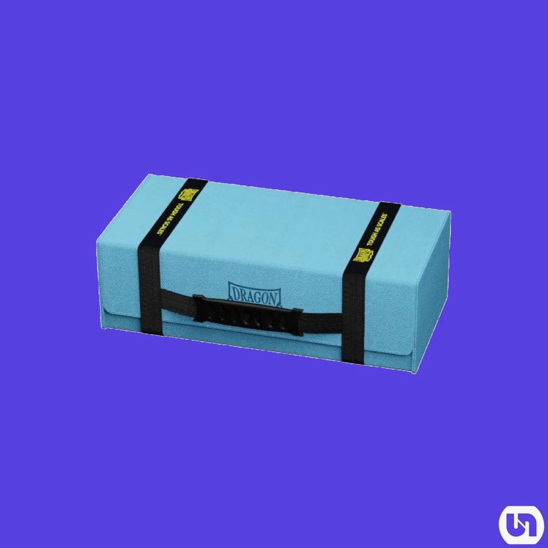 Bright and Clear Blue and deep Black interior. Dragon Shield Magic Carpet XL is a combined storage box and playmat that offers an easy and elegant way to store and transport lots of cards. It features an exclusive tough ‘Dragon Skin’ exterior and a smooth satin lined interior combined with a strong magnetic seal to keep cards safe.