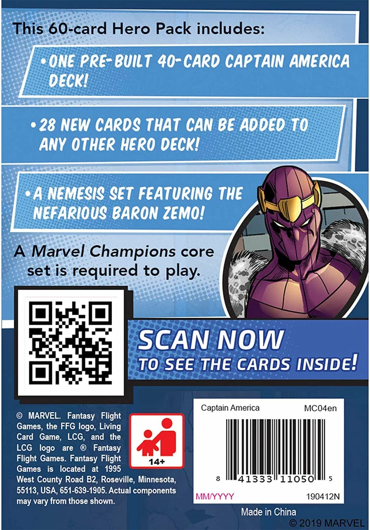 Like all Hero Packs, theย Captain America Hero Packย includes a fully-playable deck right out of the box that includes: