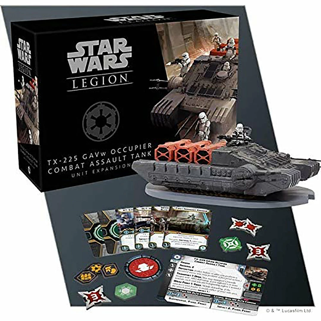- Occupy Imperial territory with the monstrous TX-225 GAVw Occupier Combat Assault Tank miniature featured in this expansion! This miniature offers a wide array of customization options—with hatches that can be built open or closed, different poses for the tank commander, three crates of kyber crystals that can be loaded into the tank bed or used as terrain, and two options for a mounted gun: a DLT-19 blaster rifle or a RT-97c Blaster Rifle.