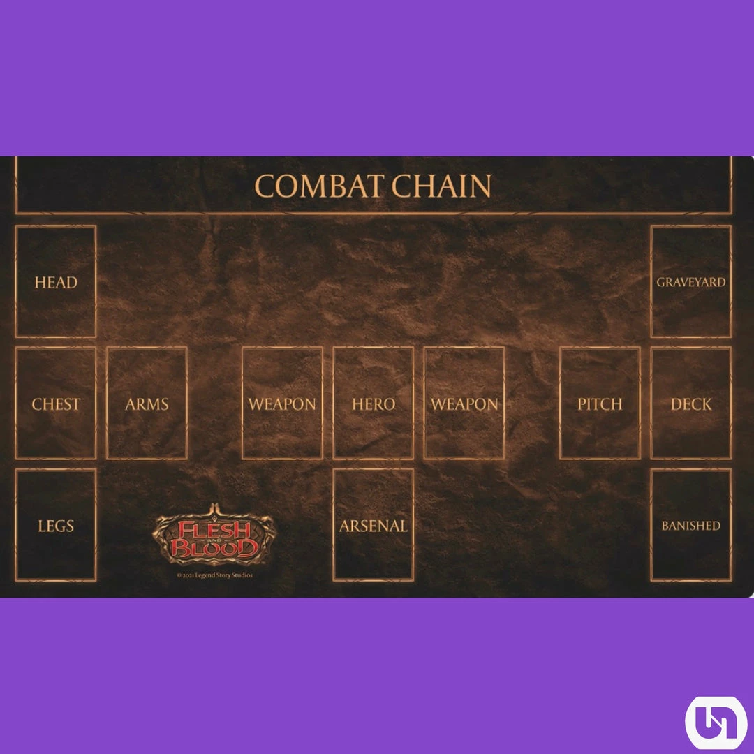 Elevate your game experience with the FAB Classic Playmat. Set the tone for epic battles, with defined zones to equip your hero and the mat-to-mat shared combat chain to engage your opponent in action packed combat! 14″ x 24″ surface area. 1.5mm thickness for ease of storage in popular playmat tubes.