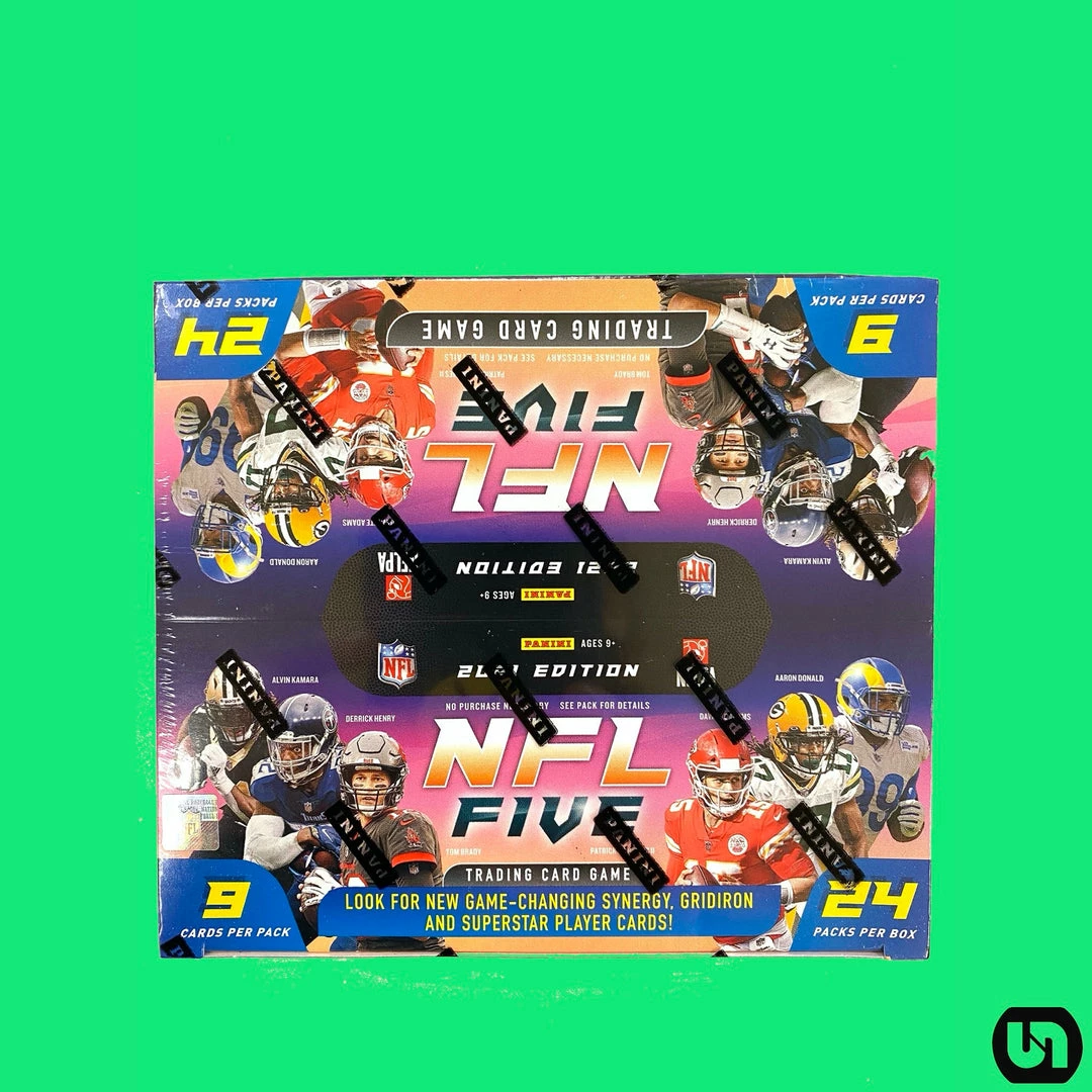 NFL Five trading card game features a 301 card set including 100 common, 100 uncommon, 33 rare, 32 epic, 18 legendary, and 18 rookie.