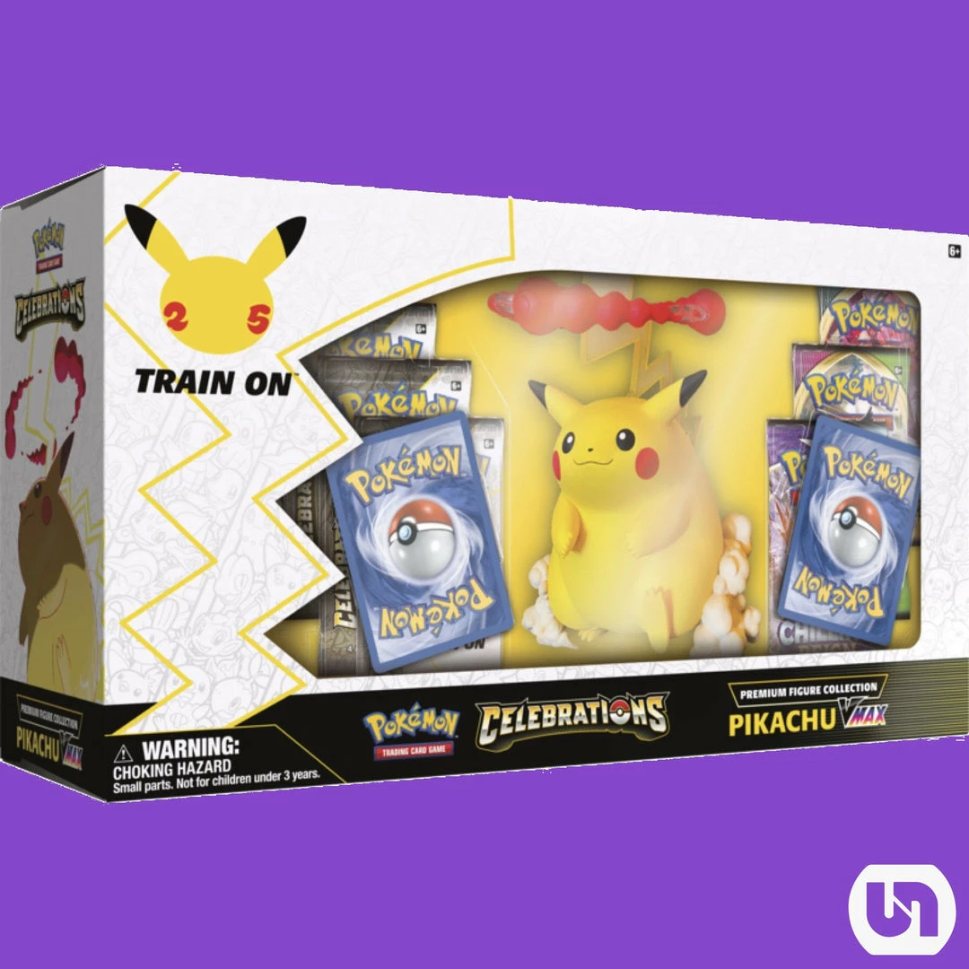 Celebrate Pokemon with Pikachu V and Pikachu VMAX, two takes on one of the best-loved inhabitants of the Pokemon world! This premium collection includes a massive set of Pokemon TCG: Celebrations boosters as well as additional booster packs. Combine all that with an enormous and impressively sculpted commemorative figure of Gigantamax Pikachu, and you have the ultimate Pikachu collection, fully charged up and ready to take on the world!
