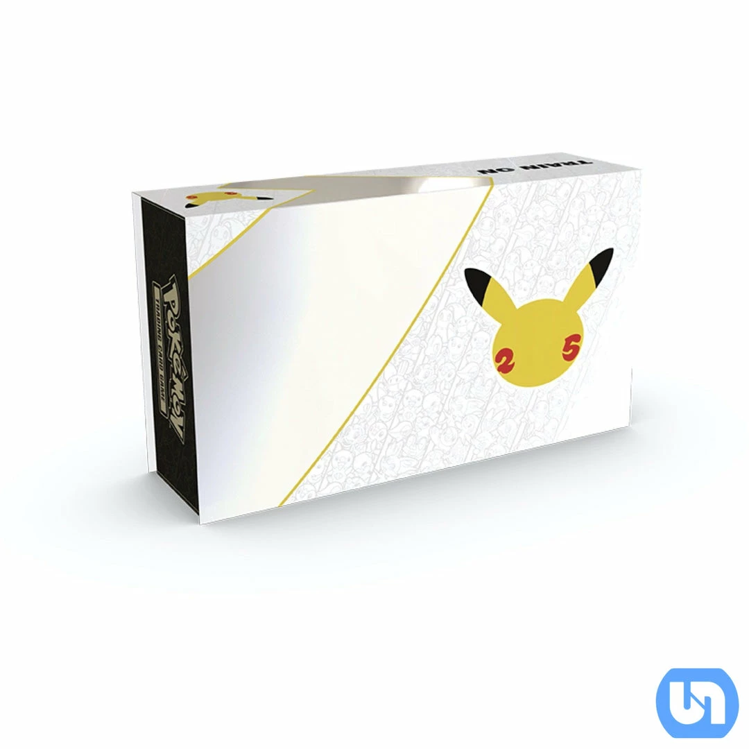 Celebrate Pokemon with Charizard and Pikachu, two of the most-loved icons of the Pokemon world! This ultimate collection includes a massive set of Pokemon TCG: Celebrations boosters as well as commemorative Pikachu and Charizard cards made of pure metal, showing these characters as they first appeared in the game! Add booster packs and a guide to game mechanics throughout the history of the Pokemon Trading Card Game, plus playable promo cards featuring Poke Ball and Pikachu V in glimmering etched gold, and then find additional surprises in even more Pokemon TCG booster packs!