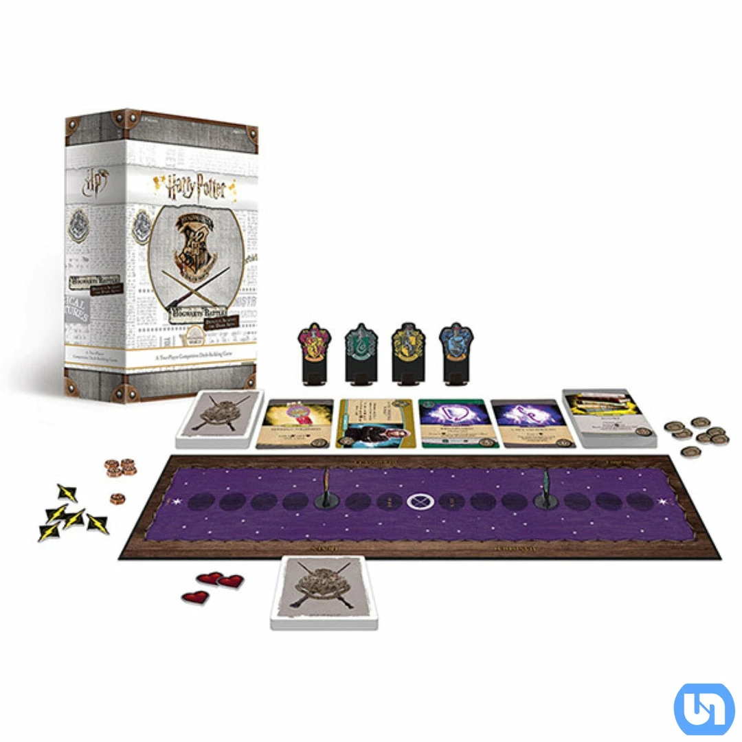 Harry Potterโข Hogwarts Battleโข Defence Against the Dark Arts is a competitive deck-building game for two players that is inspired by Harry Potter Hogwarts Battle. In this fast-paced game, players take turns playing cards, taking actions and acquiring new cards to build a more powerful deck as their defensive skills improve. Stun your opponent three times to win!