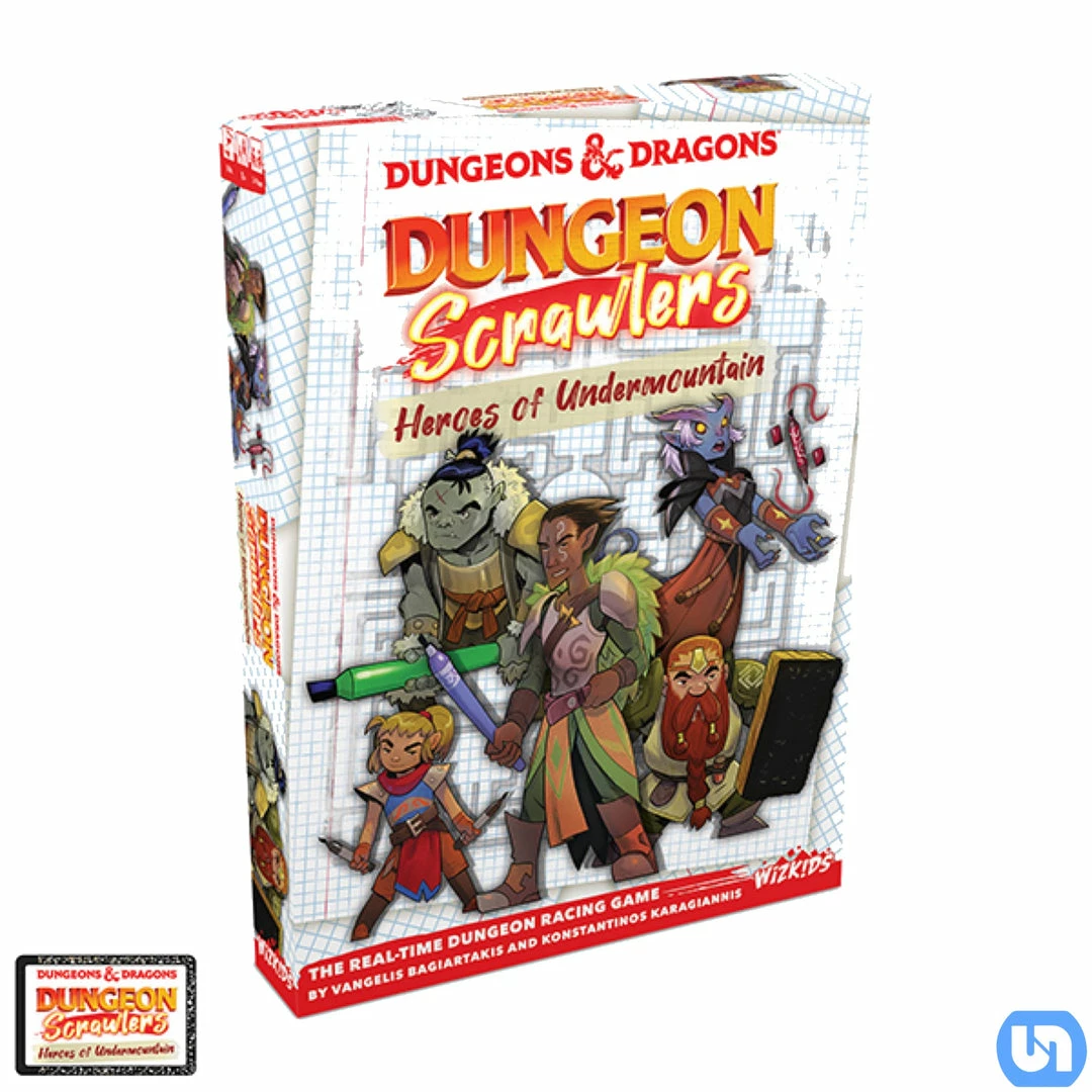 In Dungeons and Dragons: Dungeon Scrawlers: Heroes of Undermountain, you and other adventurers are drawn together to delve into Undermountain, an immense underground of dungeons created by the Mad Mage, Halaster Blackcloak. Use your markers to trace your path, defeating Monsters, casting Spells, connecting Artifact Fragments, and collecting shiny Treasure on the way! The round ends when one player defeats that dungeonβs mighty Boss, so you only have a few minutes to collect as much loot as possible! The player with the most points after exploring three dungeons is the winner!